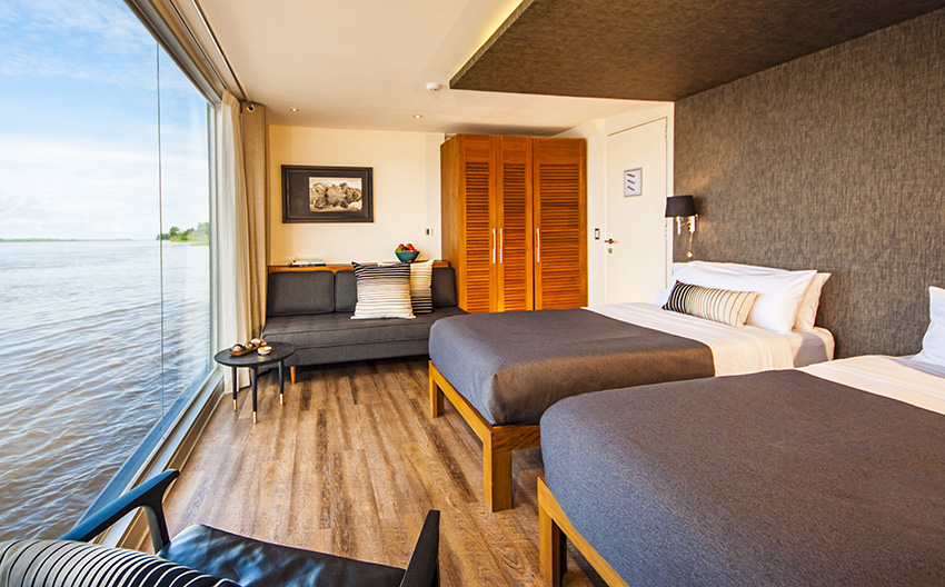 Every week of the year, the award-winning Aqua Expeditions’ luxurious M/V Aria takes 32 passengers deep into Peru’s Amazon wilderness to places only ever visited by only a fortunate few. Daily water-based excursions on comfortable launch boats allow guests to experience such wonders as pink dolphins and six-foot-wide water lilies, to fish for sharp-toothed piranha, and to interact with the people who live out their days along the river.