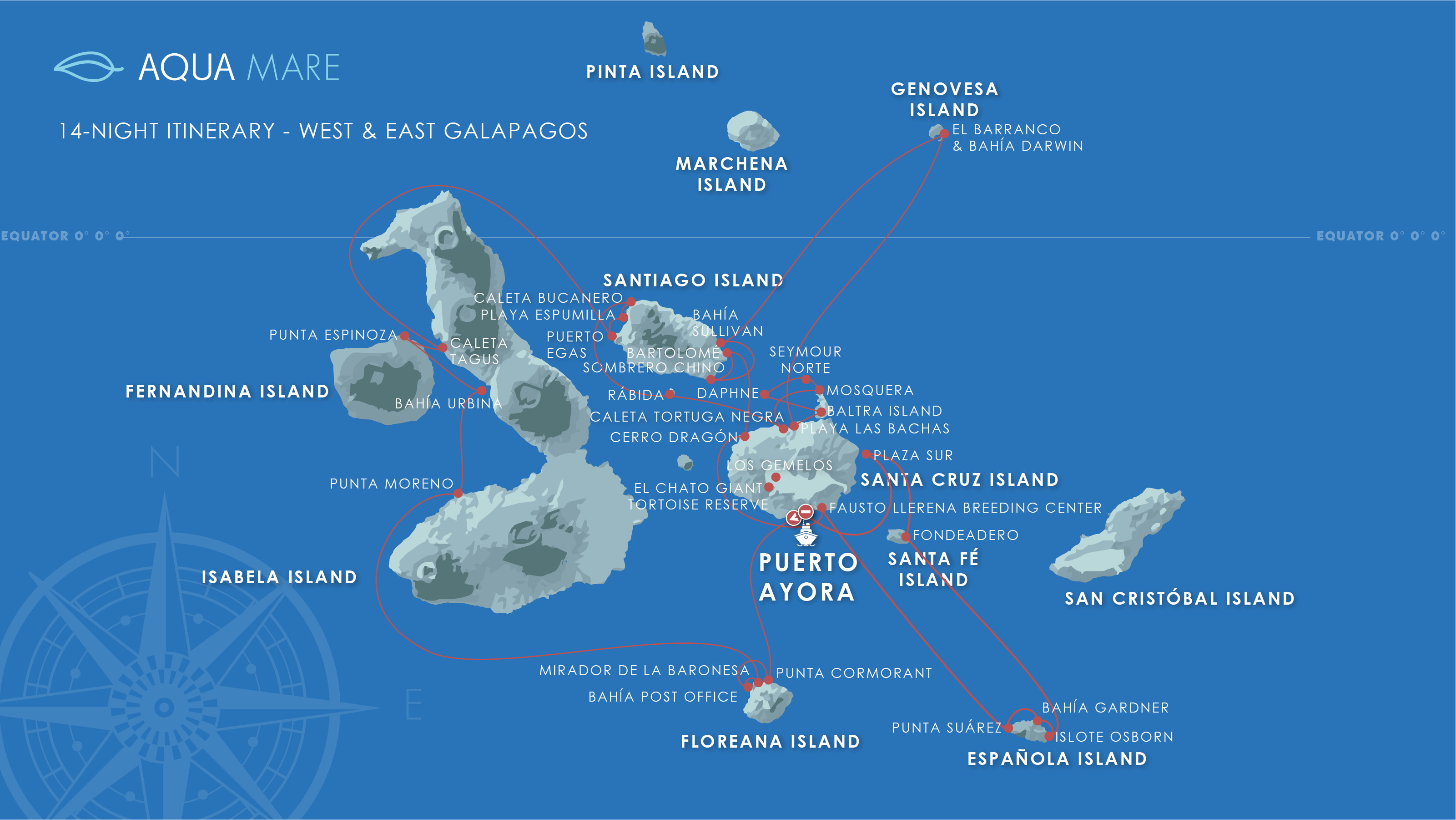 Today begins with a luxurious breakfast set against the morning sunrise. Enjoy the views from Aqua Mare before we make our way to Baltra Island to pick up guests who’ll be joining you for the next seven nights. While at Baltra, you’ll have the opportunity to relax at the beach or embark on a scuba diving excursion.
